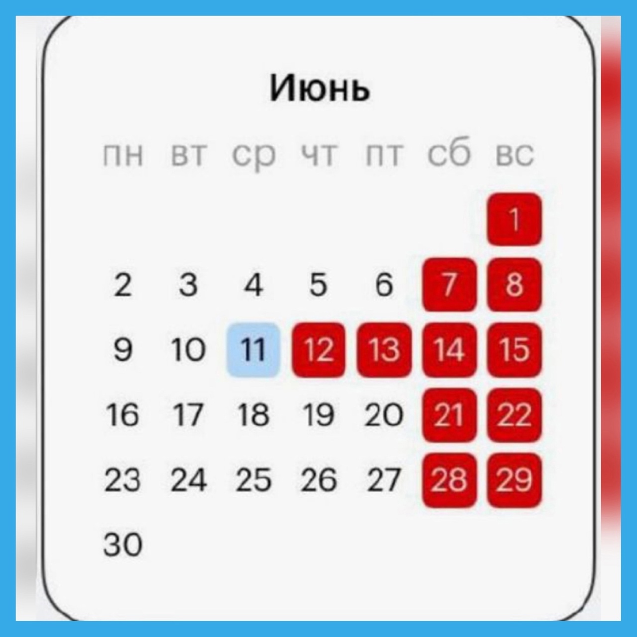 Сколько выходных в июне нас ждет?