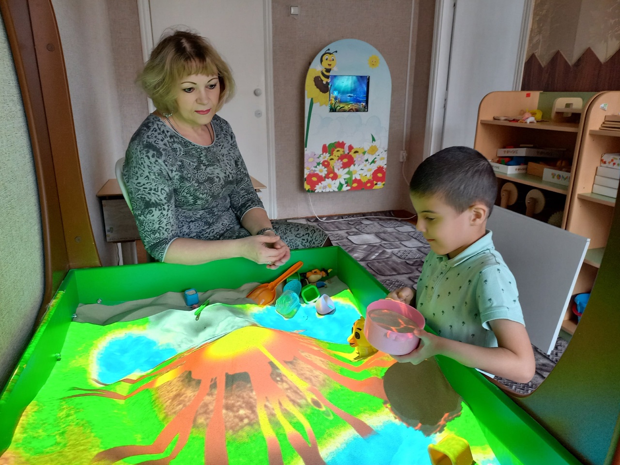 - кабинет коррекции и развития с множеством дидактических пособий и материалов, развивающей интерактивной панелью «Солнышко», панелью «Угадай звук», деревянными развивающими игрушками, световым столом для рисования песком, профессиональным коррекционным столом дефектолога, бизикубом, тактильно-сенсорным оборудованием, пособиями «Нумикон», интерактивной «говорящей» ручкой, карточками «ПЕКС», коммуникаторами;
