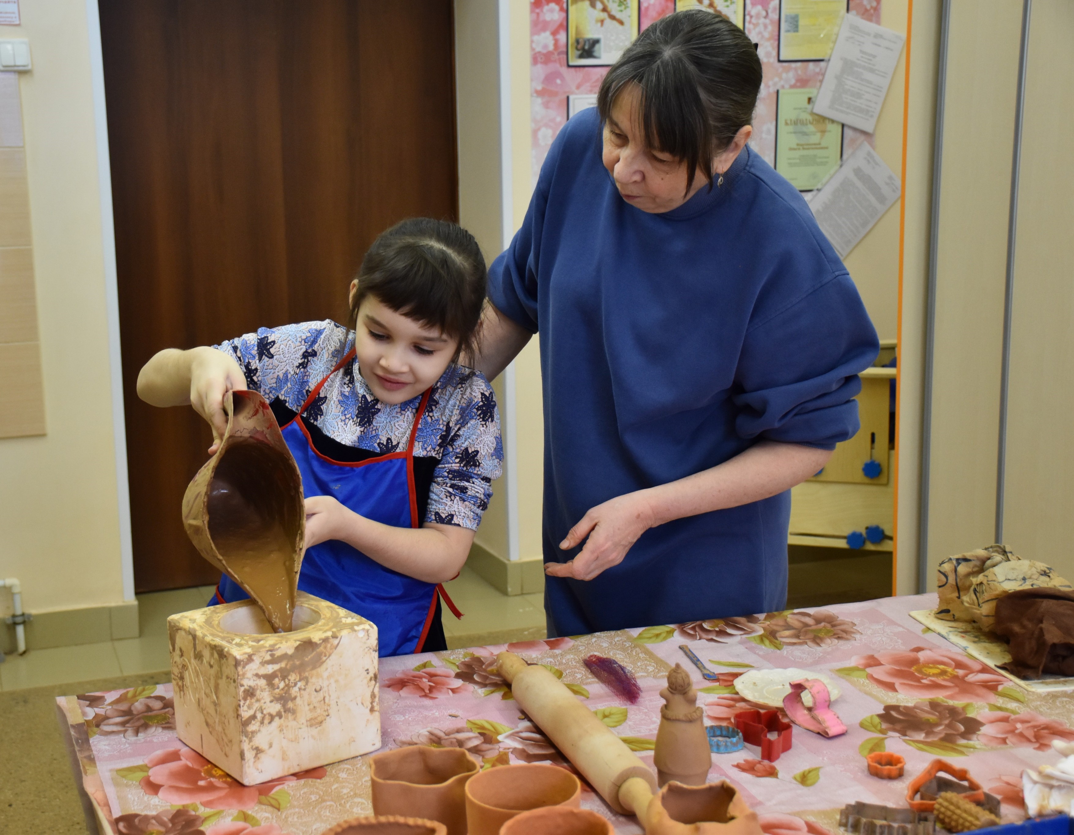 - гончарная мастерская с гончарными кругами (стационарными, переносными и для миниатюры) и электрическими муфельными печами, пластораскаточным станком, турнетками, стеками, гипсовыми формами для шликерной заливки, различная керамическая масса для лепки, глина, глазури, ангобы.;